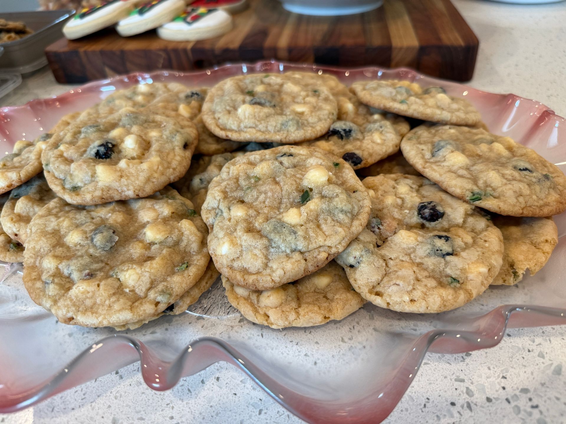 - Stir in white chocolate, macadamia nut, cranberries, and jalapeño.