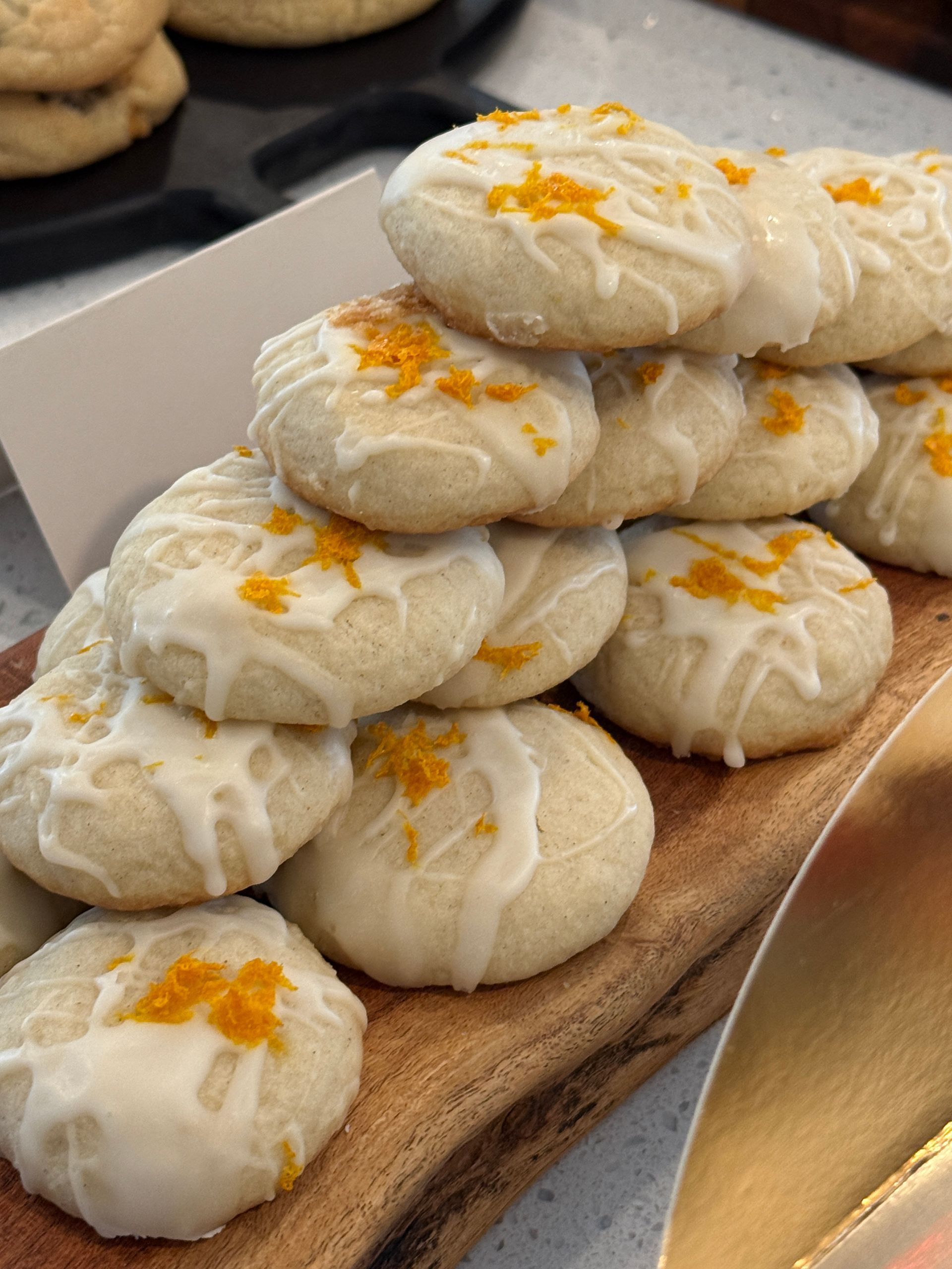 - Glaze Cookies: Dip the top side-down of each cookie into the orange glaze, then remove and position top-side up on a plate or cooling rack. Sprinkle with orange zest if desired. Allow the glaze to set fully before serving.
