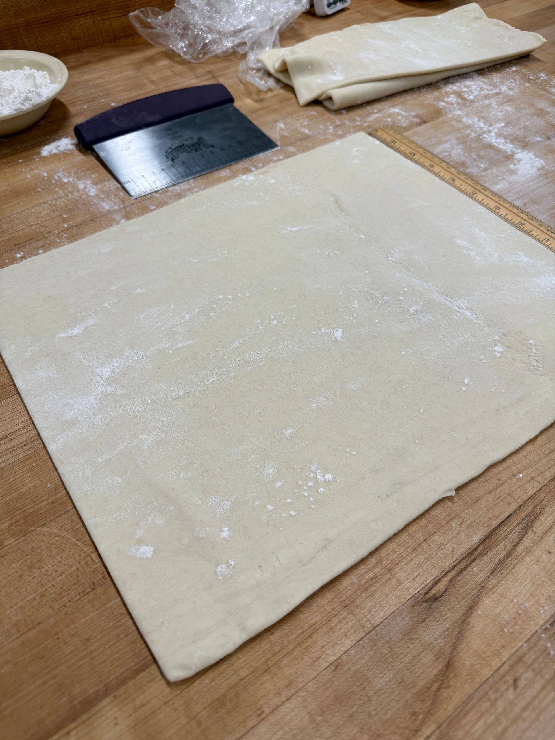 - The butter block will go 2/3 the length of the dough (not half like the puff pastry). I rolled mine out to 9.5" x 6"
