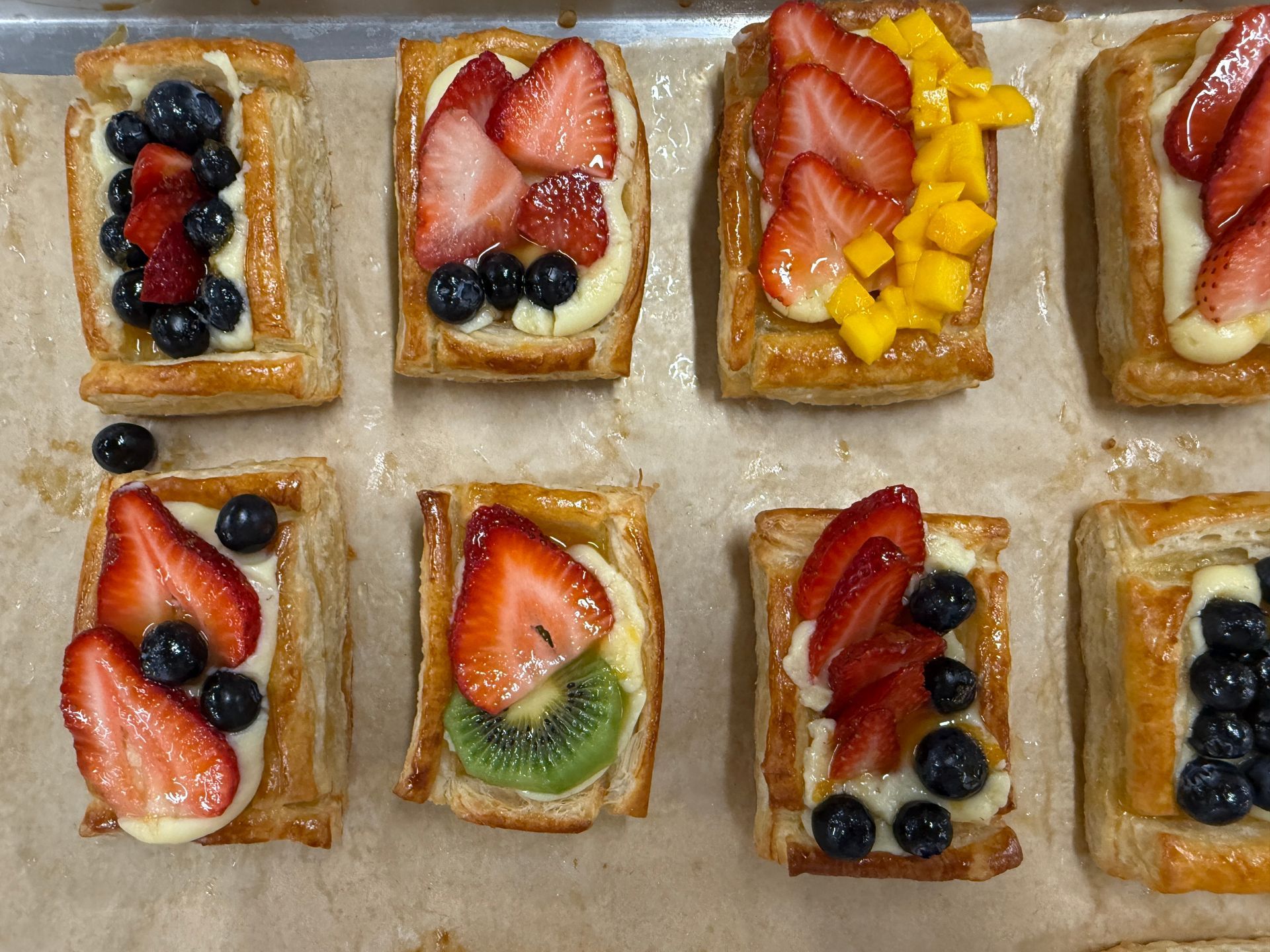 I also lean heavily on the pastries from Fundamentals of Baking and Advanced Pastry Shop. Pies and tarts are especially special to me, as well as the tricky laminated doughs that can turn out so many different products.